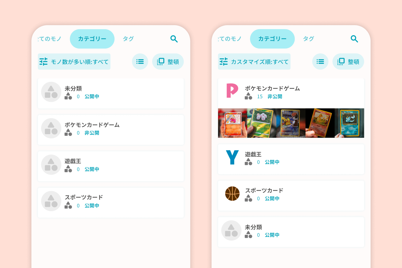 トレーディングカードのコレクター仲間や、スマホを扱えるお子様と一緒にトレカを集めている場合は、カテゴリーに対し限定公開の設定を行い、コレクション情報をシェアして楽しむこともできます。