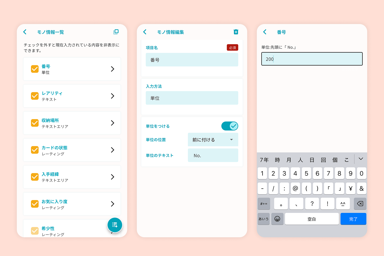 ここがモノコレの真骨頂!記録しておきたい項目をあらかじめ設定しておきましょう。